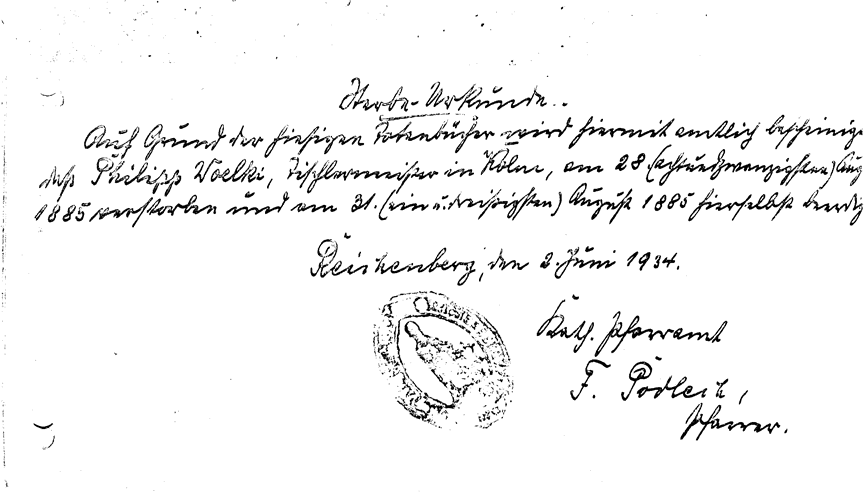 Philipp(us),Sohn von [64] Franciscus Velcki und [65] Dorothea Leihs LEIHS, hat viele Schreibweisen in Urkunden und Kirchenbüchern: Wölki, Woelke, Wölke, Velcki.