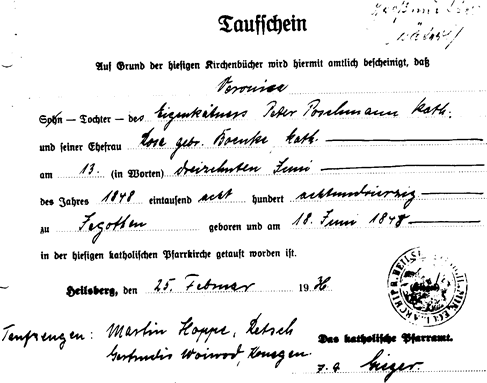 Tochter des Eigenkätners [34] Peter Poschmann und [35] Rosa Böhnke aus Jegothen.