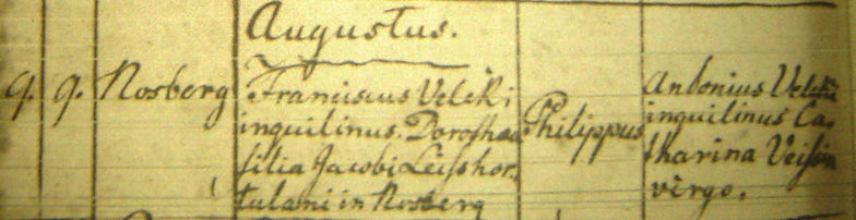 Philipp(us),Sohn von [64] Franciscus Velcki und [65] Dorothea Leihs LEIHS, hat viele Schreibweisen in Urkunden und Kirchenbüchern: Wölki, Woelke, Wölke, Velcki.