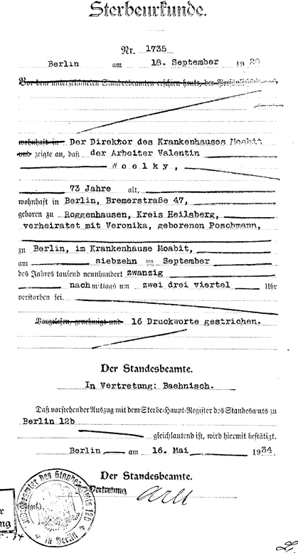 - Valentin Woelky, Sterbeurkunde 17.09.1920
